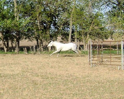 After my divorce I moved to Texas and Paula came out, too. She loved to run and play with "Bro," a large halter gelding with an equally playful streak. I began doing some roundpen work with Paula and she really excelled. I'd get compliments on her--people seemed surprised when they saw just how pretty she moved.